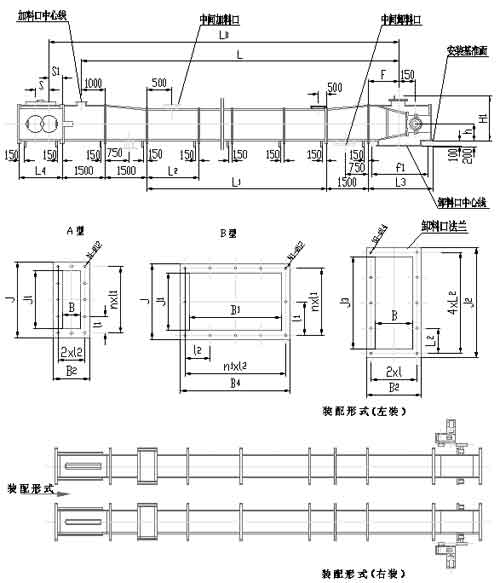 MS32、MS40型埋刮板輸送機(jī)安裝尺寸表(mm):